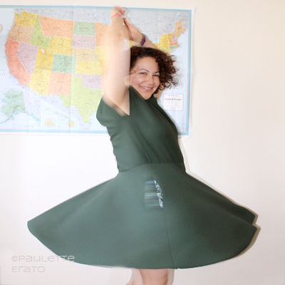 I had to be in Oakland on yet another business trip the month after the wedding (it’s a miracle we had time to honeymoon!), and snuck over to Stonemountain & Daughter. There I encountered some really pretty dark green ponte for the first time ever. I’d heard of ponte, and how magically easy it was to sew, so I snatched up 3 yards.