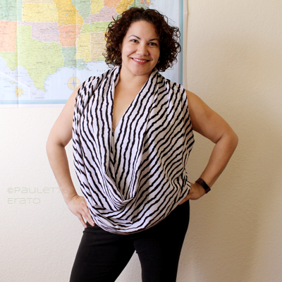Despite all of that, this is one of my favorite shirts. Sure the stitching is wonky, the front V dips a little too low (nothing a black bralette can’t fix), those armholes leave a lot to be desired (again, bralettes FTW), and it’s not the most flattering look (hi, not pregnant!) but I absolutely love this piece. It was technically the 14th garment ever I sewed and/or upcycled, but it’s the only one from those early days that gets any use. I even wore it to work—multiple times! And to conferences I was executing, meaning I had to look like I was in charge. My trusty zebra top has seen me through a lot since it came together.