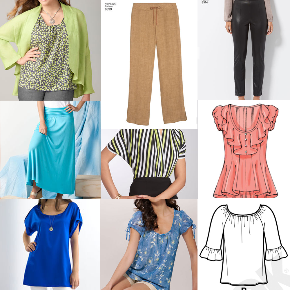 I made or attempted to make: the cardigan (twice), both pants, the yoga skirt, and the vintage blouse. Basically I started at the top left, worked my way across, and stopped in the middle.